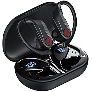 • MAIJOFO Auriculares Inalámbricos 60H Playtime Over Ear Bluetooth 5.3, 2023 Auriculares In Ear con Gancho para la Oreja, Auriculares Inalámbricos con Pantalla LED, Entrenamiento Auriculares Bluetooth