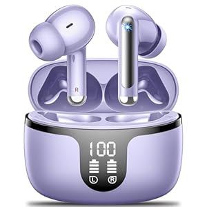 • Monyhigh Auriculares Inalámbricos Bluetooth 5.3, Cascos Inalambricos Bluetooth HiFi Estéreo Pantalla LED, 50H Auriculares in Ear Control ENC Cancelación de Ruido IP7 Impermeables -Morado Claro