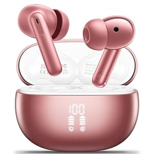 • Auriculares inalámbricos, Auriculares Bluetooth 5.3 en el oído con estéreo HiFi de Graves Profundos y micrófono 4 ENC, con Tiempo de reproducción de 42 Horas con Pantalla LED -Rosa