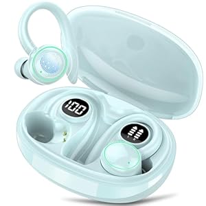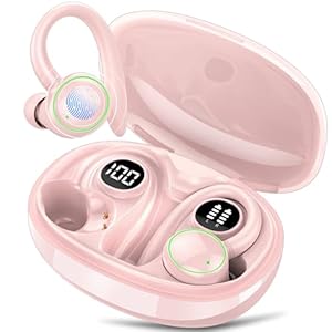 • Kicoeon Auriculares Inalambricos, 60H con Indicador de Carga LED, Bluetooth 5.3, Llamada Clara CVC8.0, Deportivos con Gancho, Bajos Profundos, IPX7 Impermeable.