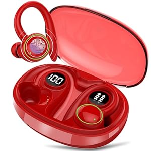 • PEFUPEW Auriculares Deportivos Bluetooth, Auriculares Bluetooth con Micrófono Estéreo, Auriculares Inalámbricos, Carga Rápida, Auriculares Bluetooth con Pantalla LED Impermeable, Rojo