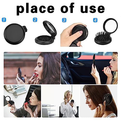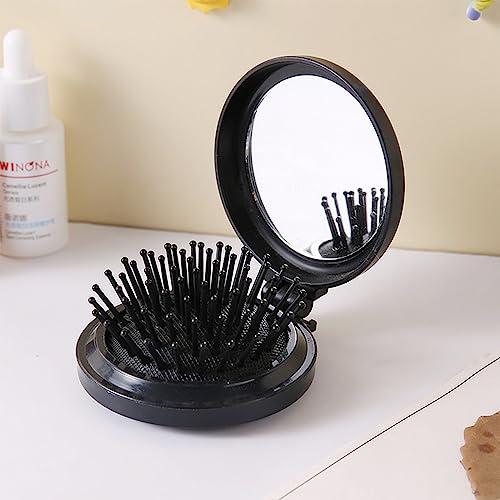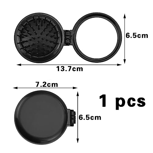 1 pieza Cepillo Pelo Plegable con Espejo,Cepillo de viaje con espejo Plegable Redonda,Cepillo de bolsillo,Mini Peine de Cabello,para niños y adultos para Viaje,Masaje(Negro)
