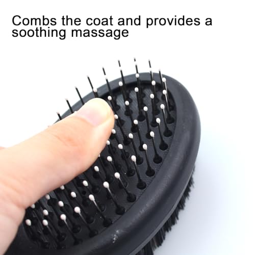 🐈【Material de alta calidad】Un lado está hecho de cerdas suaves, que se utilizan para quitar el pelo flotante, el polvo y las impurezas de su perro, y también se puede cepillar durante el baño. El otro lado está fabricado con suaves agujas de acero de cabeza redonda, ideales para eliminar el pelo enredado y suelto, como los de Caniches, Bichons, Pomerania y, especialmente, los talones rizados que necesitan un pelo esponjoso. Aumenta la circulación sanguínea, dejando a tu mascota suave y brillante.