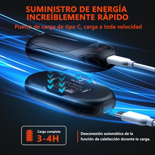 【Certificaciones de Alto Rendimiento y Seguridad】Este calentador de manos está fabricado con avanzadas baterías de litio, aluminio y ABS y cuenta con las certificaciones UL, CE y FCC. Incorpora un sistema de protección inteligente para protegerse de problemas comunes como fluctuaciones de corriente, cortocircuitos y sobrecargas. Es ignífugo, a prueba de explosiones y no emite radiaciones, para que no tengas que preocuparte.
