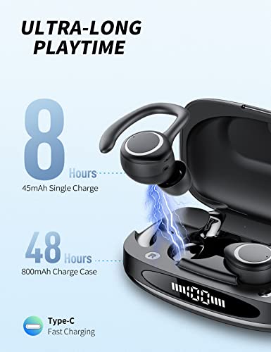 48H de Duración de la Batería: ¡Los auriculares inalámbricos incorporan una batería de polímero de litio de protección ambiental de 40mAh, una sola vez puede escuchar de forma inalámbrica a 6 horas, con el uso de la caja de carga de 800mAh, se puede disfrutar de la diversión de los deportes extendido a 48 horas!