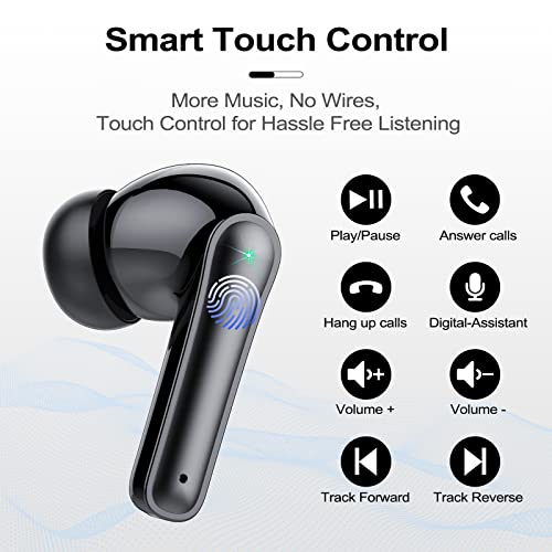 NUEVO BLUETOOTH 5.3 Y TÁCTIL FÁCIL: Los auriculares inalámbricos están equipados con la tecnología Bluetooth 5.3 líder del sector, que permite una velocidad de transmisión de audio hasta un 75% más rápida y una conexión estable a una distancia de hasta 15 metros. Los auriculares bluetooth incorporan tecnología de control táctil para acceder rápidamente a todas las funciones, como reproducción/pausa de música, volumen +/-, compatibilidad con Siri, llamadas y mucho más.
