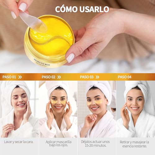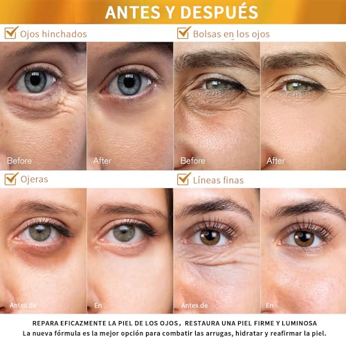 【Parches Ojos Bolsas y Ojeras】:Estimula y regenera las células de la piel,eleva dramáticamente la capacidad de crecimiento de colágeno de su propia piel.Esto restaurará la elasticidad y firmeza de su piel,y reducirá las arrugas,los ojos hinchados,las líneas finas,las patas de gallo y la aparición de bolsas y círculos oscuros debajo de los ojos.