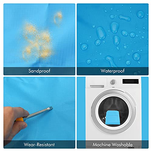 【Impermeable y Resistente a La Arena】El poliéster 210T es una tela ligera y resistente al desgaste que es impermeable y resistente a la arena. Elimine fácilmente la arena u otros desechos agitando suavemente la alfombra de playa, evitando de manera efectiva que la arena se pegue a la alfombra. Esta alfombra de playa se puede lavar a máquina o lavar a mano, fácil de limpiar.