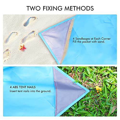 【4 Sacos de Arena a Prueba de Viento】 ¿Le preocupa que se las lleve el viento? Esta esterilla de playa viene con 4 sacos de arena, que están rellenos de arena y reforzados con 4 clavos de tierra de ABS, para que puedas disfrutar del tiempo cuando estás cerca de la naturaleza con tu familia y amigos.