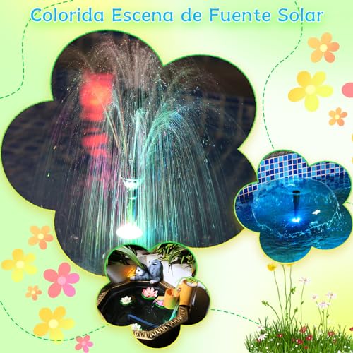 AMZtime 20W Colorido LED Fuente Solar para Exterior con 3 * 2500mAh Batería Plegable Bomba Solar de Estanque con Soporte Ajustable con 6 Boquillas para Jardín, Estanque,DIY Fuente de Agua