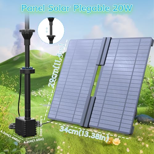 【Fácil Instalación y Funcionamiento】Bomba agua solar autónoma con soporte ajustable. Muévase libremente a diferentes lugares, sin instalación y mantenimiento complicados, puede disfrutar de la interesante vida del jardín. El cable entre el panel solar y la bomba es lo suficientemente largo con un cable largo de 3M para cubrir un área relativamente grande sin preocuparse de que la bomba no funcione a la sombra.