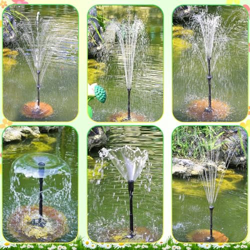 【6 Reemplazable Boquillas】6 Diferentes boquillas pueden satisfacer sus diferentes requisitos de altura de columna de agua o forma de columna de agua. Un fuerte elemento ornamental que hace que su estanque de jardín sea aún más hermoso y dinámico para un fácil cambio de boquilla.(Si la fuente se coloca en un baño para pájaros relativamente pequeño, se recomienda no instalar una boquilla para evitar fugas de agua del baño para pájaros).