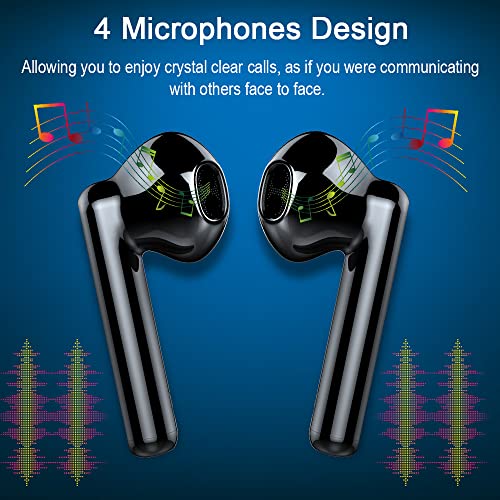 Diseño de 4 Micrófonos y Llamadas de Alta Definición: El 4 micrófonos incorporado y el diseño de cancelación de ruido, tanto el auricular izquierdo como el derecho soportan responder y colgar llamadas, brindándole una grata experiencia de llamada. El auricular bluetooth adopta la tecnología de reducción de ruido ENC, para que la otra parte pueda escuchar claramente su voz incluso en un entorno ruidoso.