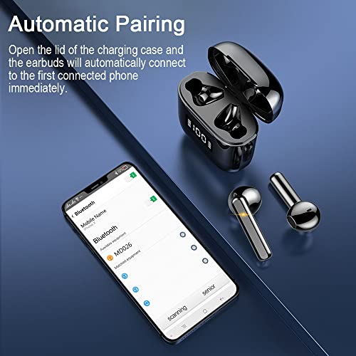 Carga Sobre la Marcha y Pantalla LED: Después de cada carga, los auriculares deporte pueden reproducir la música durante unas 5 horas. Con el estuche de carga, el tiempo total de reproducción puede alcanzar hasta 25 horas. Solo se necesitan 1H para cargar completamente el estuche de carga a través del cable Type-C de carga rápida. Los auriculares inalámbricos adoptaron LED pantalla, indicará cuánta batería queda en el estuche de carga. ¡Disfruta de la música todo el día!