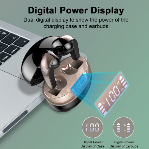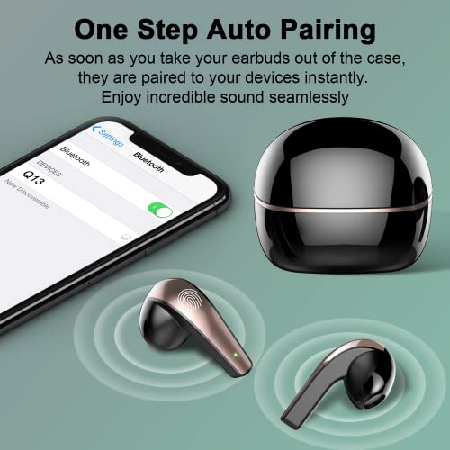 Emparejamiento en un solo paso e IP7 Impermeable: Simplemente saque los auriculares in ear del estuche de carga y se conectarán automáticamente a su teléfono (después de emparejarlos por primera vez). La tecnología a prueba de agua protege eficientemente los audífonos inalámbricos contra daños causados por el sudor, perfectos para deporte, estado físico, viajar, etc.
