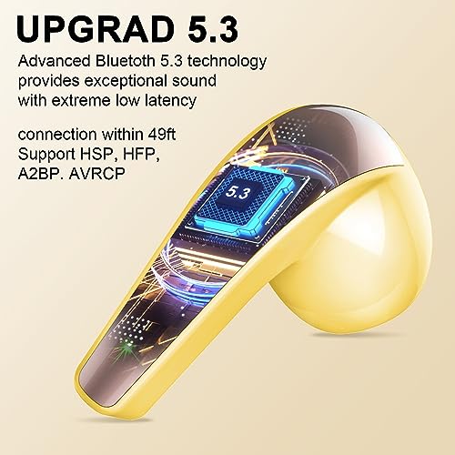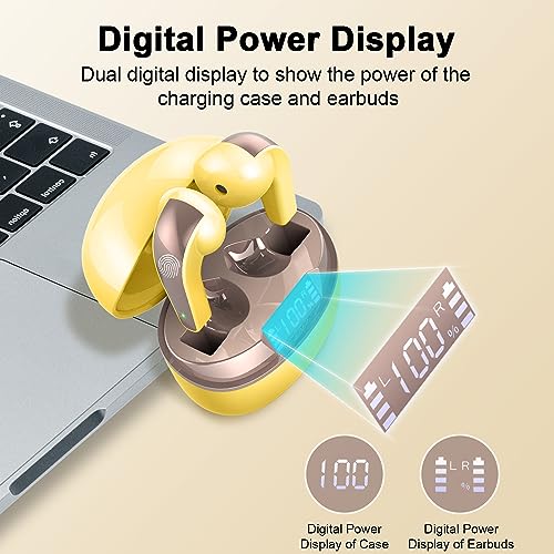 Diseño semi interno: Con un peso de tan solo 3,2 g cada uno, los auriculares semi internos se adaptan al contorno de la oreja para que puedas escuchar durante horas sin sentir ninguna incomodidad. Para que sea más conveniente para su uso diario, tenemos una pantalla LED en el estuche de carga que indica la batería en tiempo real.Ligeros y cómodos.