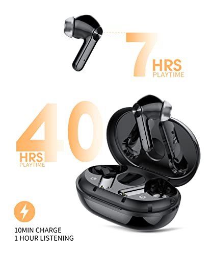 Duración de la Batería Ultralarga de 40H y Pantalla Digital LED: funcionamiento con bajo consumo de energía y 30% de ahorro de energía, un solo auricular usa hasta 8 horas. La pantalla digital LED le permite saber la energía restante en cualquier momento.