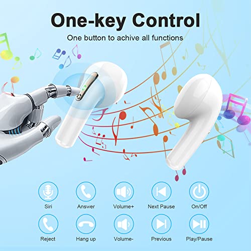 Pantalla de Potencia Led y Uno Botón de control: Los cascos bluetooth utilizan tecnología de pantalla LED exclusiva para mostrar con precisión la potencia restante de los acascos inalambricos bluetooth y la funda de carga. Además, gracias al sistema de operación de botones, no se preocupe por el mal funcionamiento, como una pausa repentina por un toque accidental causado por movimiento de manos. Puede controlar fácilmente su música y llamadas, como reproducir/pausar, cambiar canciones, etc.