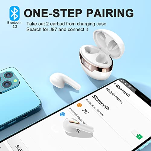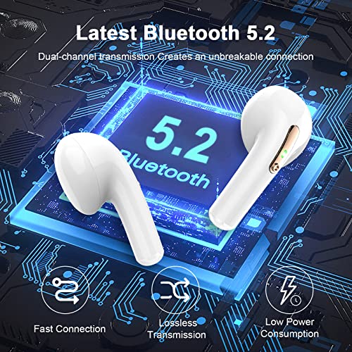 Última TecnologÍa Bluetooth 5.2: Estos auriculares inalambricos ​están equipados con versión 2021 de la tecnología Bluetooth 5.2 y pueden proporcionar aproximadamente 4 veces el rango de comunicación de los convencionales, y la estabilidad de la conexión mejora aún más. Solo saque los auriculares bluetooth del estuche de carga, se volverán a conectar con el último dispositivo conectado automáticamente, es conveniente y rápido. (después del primer emparejamiento).