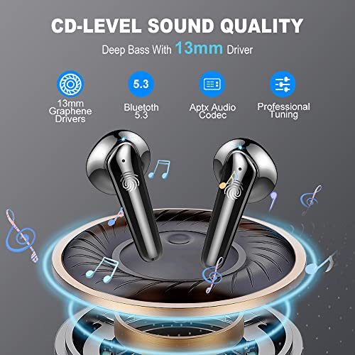 Tecnología Bluetooth 5.3: Auriculares inalámbricos están equipado con un chip bluetooth 5.3 para garantizar una conexión más estable, menor latancia y menor consumo de energía durante la transmisión de datos. El último tecnología Bluetooth 5.3 ofrecen una actualización completa en todos los sentidos para garantizar una conexión perfecta (75% más estable que la última generación) y un sonido mejorado. Simplemente siéntase libre de disfrutar de música inalámbrica con alta calidad.