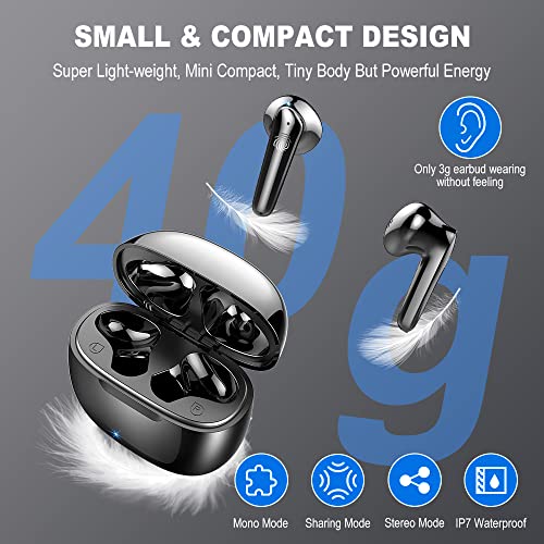 Mini Diseño Ergonómico, Ajuste cómodo y seguro: Los auriculares inalambricos bluetooth se adopta un diseño cómodo dentro de la oreja para adaptarse mejor al canal auditivo, proporcionando una experiencia de uso estable y cómoda para ambas orejas desde adentro hacia afuera. Los auriculares unilaterales pesan solo 3.7 gramos, y el cuerpo pequeño y liviano es fácil de usar, lo que reduce en gran medida la fatiga del uso a largo plazo.
