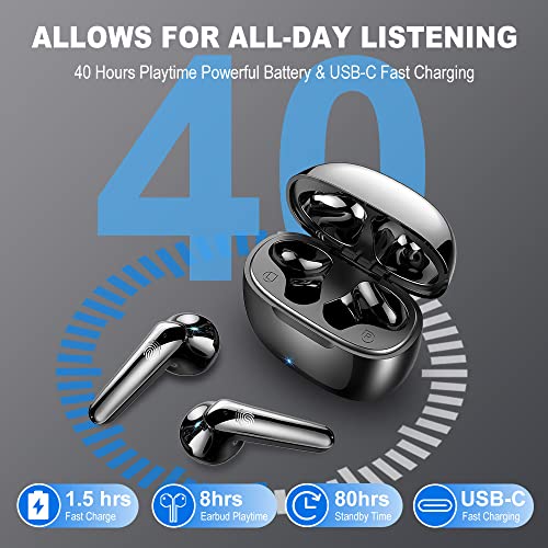 40 Horas de Reproducción & Carga Rápida Tipo-C: Los auriculares inalambricos deportivos proporcionan hasta 8 horas de escucha con una sola carga completa, que se extienden a 40 horas de reproducción incluyendo el estuche de carga. En solo 1 horas, puedes recargar completamente el estuche debido a que dispone de carga rápida USB-C. Los auriculares bluetooth inalámbrico se apagan y se ponen a cargar solos al meterlos en la caja.