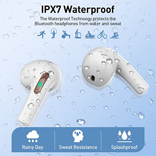 Emparejamiento en un solo paso e IP7 Impermeable: Simplemente saque los auriculares in ear del estuche de carga y se conectarán automáticamente a su teléfono (después de emparejarlos por primera vez). La tecnología a prueba de agua protege eficientemente los audífonos inalámbricos contra daños causados por el sudor, perfectos para deporte, estado físico, viajar, etc.