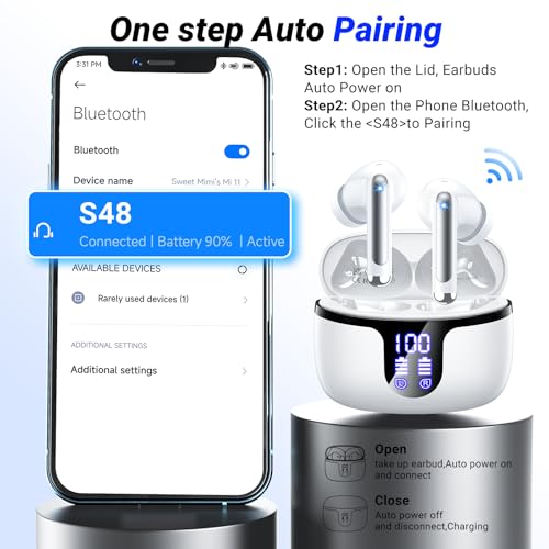 Ampliamente Compatible y Control Táctil: Los S48 Cascos Inalambricos se pueden emparejar con la mayoría de dispositivos con Bluetooth, como tabletas, IOS o Android etc, sin preocuparse por problemas de compatibilidad. Los auriculares utilizan un chip táctil de alta precisión para ofrecerle un control táctil, puede contestar llamadas, colgar, reproducir / pausar música, ajustar el volumen y activar siri etc, con solo un toque de sus cascos inalambricos bluetooth.