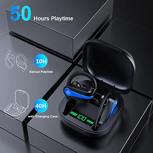 50H de Reproducción y [USB-C Pantalla Digital]: Los auriculares deportivos bluetooth pueden proporcionar unas 10 horas de reproducción con una sola carga y el estuche de carga portátil de puede cargar los cascos 5 veces, por lo que el tiempo total de uso llegará hasta 50 horas. Son muy adecuados para uso diario y deportivo al aire libre. Disfruta de la música durante todo el día! Auriculares deportivos con función de pantalla led de batería, puede verificar fácilmente el nivel de la batería.