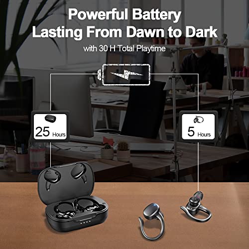 30H de duración Ultra-larga: Con una sola carga de batería para los auriculares inalámbricos, puede escuchar música durante 5 horas, e incluso hasta 30 horas con el estuche de carga. con la carga rápida USB, solo lleva 1,5 horas cargar la funda. proporciona una forma de carga conveniente sin ataduras. lo que te mantiene libre de ansiedad incluso si estabas lejos de casa o de vacaciones.