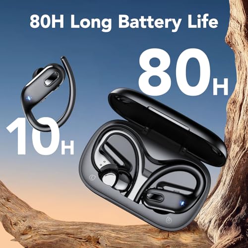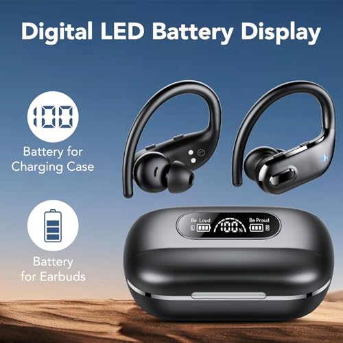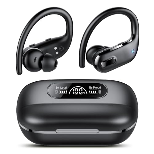 Auriculares Inalámbricos Deportivos, Auriculares Bluetooth 5.3 HiFi Estéreo ENC Cancelacion Ruido LED Pantalla, 80H Auriculares Deporte Running con Gancho, Cascos Inalambricos IPX7 Impermeable USB-C