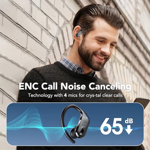 【85% Mejora de los graves & ENC Despejar llamadas】Este auriculares bluetooth deportivos cuenta con una gran unidad de controlador de altavoz de 14,5 mm con un 85% de mejora de graves para una experiencia auditiva envolvente. Built-in 4 ENC llamada micrs mejorar las llamadas de conferencia y reducir el ruido ambiente externo para llamadas claras. Ideal para amantes de la música y aquellos que necesitan usarlo para conferencias web y clases en línea.