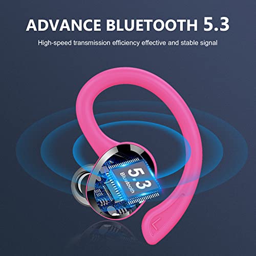 Bluetooth 5.3 y HD Micrófonos: Estos auriculares inalámbricos están equipado con un chip Bluetooth 5.3 para asegurar una mayor velocidad de transmisión y una conexión más estable para que pueda disfrutar de su música, vídeos, podcasts y espectáculos en directo favoritos en cualquier momento sin apenas pérdidas de audio. El micrófono incorporado, tanto el auricular izquierdo como el derecho soportan responder y colgar llamadas, brindándole una grata experiencia de llamada.
