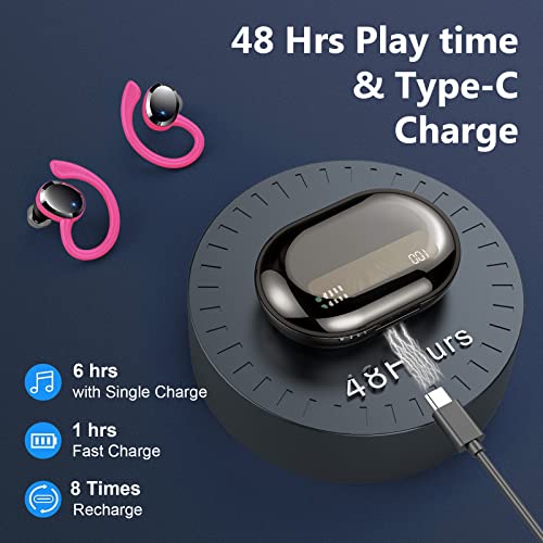 48H Playtime y Type-C Rápida Charge: Debido al control del consumo de energía de la nueva generación de chips, los auriculares inalambricos Bluetooth se pueden usar durante aproximadamente 6 horas con una sola carga, y los auriculares bluetooth con una caja de carga se pueden usar hasta 48 horas. Con la carga rápida, una carga de 10 minutos en el estuche de carga le dará hasta 60 minutos de tiempo de reproducción, ¡diga adiós a la ansiedad de la batería!