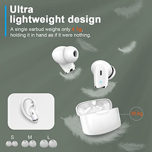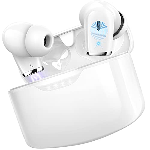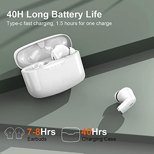 Carga Sobre la Marcha: Auriculares in ear una sola carga le brinda 8 horas completas de escucha, mientras que el estuche de carga se extienda a 40 horas para que continúe durante todo el día. En solo 1,5 horas, puedes recargar completamente el estuche debido a que dispone de carga rápida USB-C, coloca ambos bluetooth headphones de nuevo en la funda de carga, los earphones se apagado y se cargarán automáticamente.