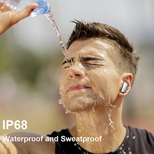 Ajuste Perfecto y IP68 Impermeable: Equipados con 3 pares de tapones para los oídos de 30° silicona de diferentes tamaños, en el diseño de los auriculares inalambricos deportivos se consideró la forma de las orejas, coincide con las curvas de los canales auditivos para que las personas se sientan más cómodas cuando los usan. La tecnología a prueba de agua protege eficientemente los audífonos inalámbricos contra daños causados por el sudor, perfectos para deporte, estado físico, viajar, etc.