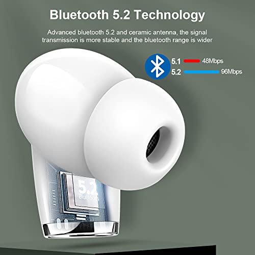 Potente Bluetooth 5.2: Los cascos bluetooth incorporan tecnología Bluetooth 5.2 de avanzada, lo que mejora enormemente la velocidad de transmisión y logra una conexión más rápida y estable, ofreciendo una experiencia auditiva de baja latencia, por lo que no hay desconexión al escuchar música o hacer llamadas telefónicas dentro de los 15 metros.