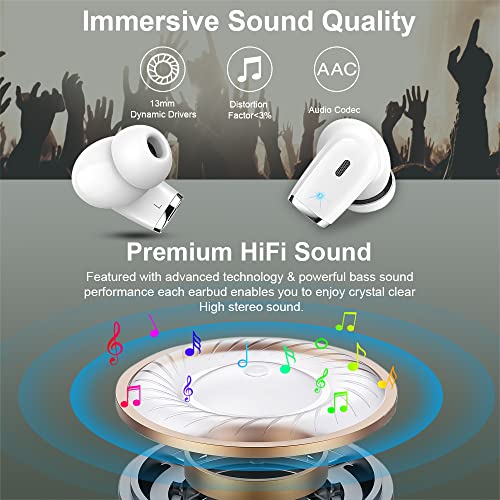 Calidad de Sonido Estéreo: El altavoz de 13 mm de diámetro de los auriculares inalámbricos presenta un rango de sonido potente y amplio, que hace que los agudos estén llenos de dinámica y los graves potentes. Los earphones son compatibles con AAC, que es un codificador avanzado que puede obtener una mejor calidad de sonido en iOS y Android.