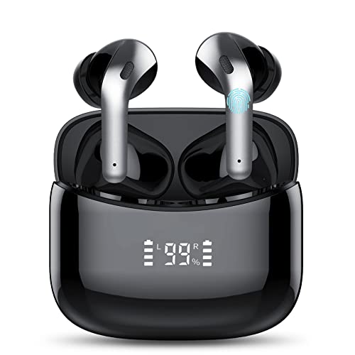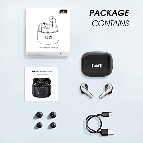 Sonido envolvente y ligero: los auriculares X15 tws adoptan un diseño estéreo único y un altavoz grande de 13 mm para producir un sonido potente, estos verdaderos auriculares inalámbricos son pequeños y ligeros, auriculares con funda es de solo 1.5 onzas, el tamaño de la funda de carga es de 2.5 x 2.1 x 1 pulgada, es fácil de llevar.