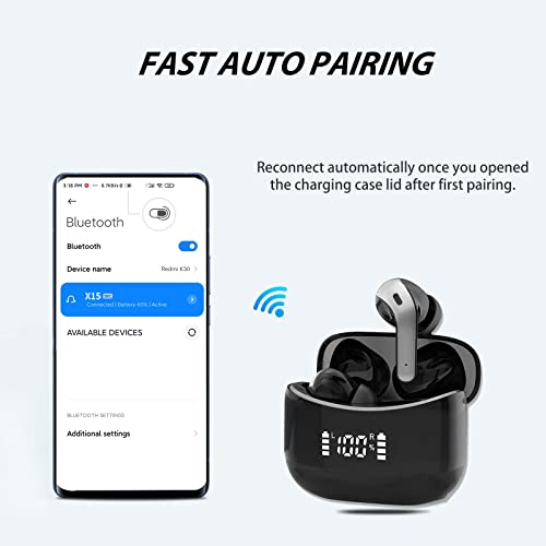 Bluetooth 5.2 y emparejamiento en un solo paso: el X15 utiliza tecnología Bluetooth 5.2 que transmite sonido a los auriculares inalámbricos izquierdo y derecho simultáneamente, proporcionando una conexión estable y fiable perfecta para superar los retrasos de voz. Se conectan automáticamente al último dispositivo emparejado cuando abres la tapa de la funda. Estos auriculares son compatibles con iOS o Android