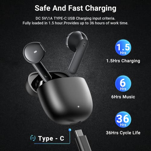 【30 horas de reproducción】 Auriculares Bluetooth Una caja de carga con una interfaz USB-C, la luz LED debajo de la caja de carga parpadeará. Cargue los auriculares internos hasta 6 horas con una sola carga, mientras que el estuche de carga portátil carga los auriculares 5 veces para 30 horas de tiempo de reproducción al día.