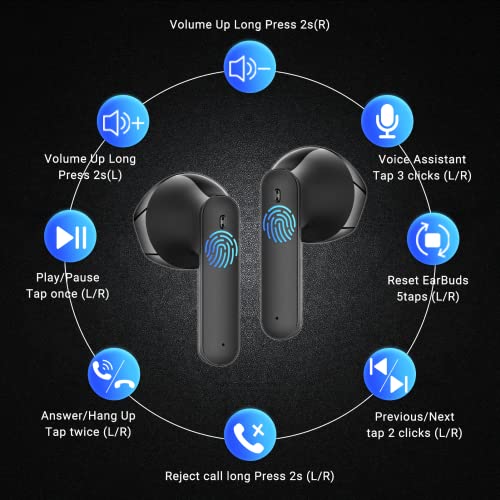 【Conexión Automática,Toque Fácil】 después de abrir el estuche de carga, los auriculares Bluetooth inalámbricos se emparejarán automáticamente con el último dispositivo conectado, también puede usar los auriculares Bluetooth para controlar fácilmente la música o las llamadas, pausar la reproducción, ajustar el volumen, contestar colgar o rechazar entrantes llamadas e iniciar asistente de voz.
