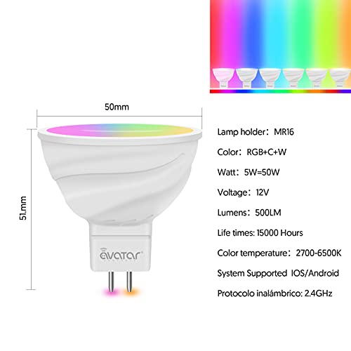 ✅【Bombilla MR16 Regulable】RGB regulable + luz cálida + luz fría, 16 millones de colores y 8 modos de escena pueden satisfacer sus diferentes estados de ánimo y hacer su vida más colorida. El brillo se puede configurar del 1% al 100% a través de la aplicación o la voz.La temperatura del color se puede ajustar de 2700k a 6500k.