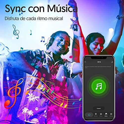 ✅【Ritmo de la Música】Bombillas LED inteligentes GU5.3 puede sincronizar la música y puede parpadear / cambiar de color con el ritmo de la música. Hará que tu fiesta sea más interesante.