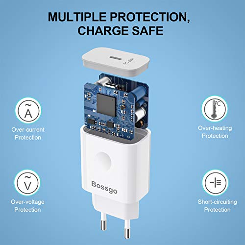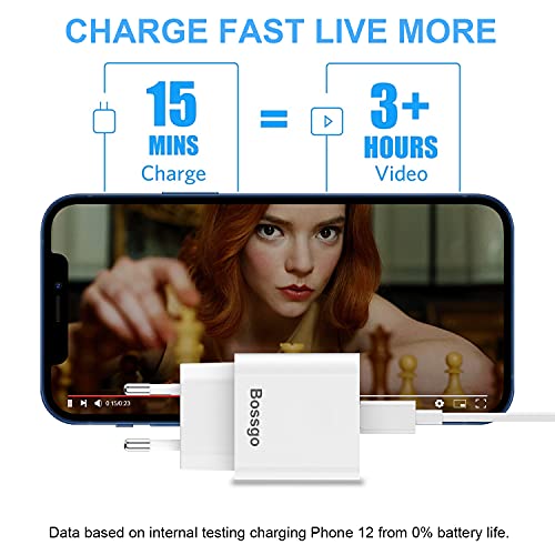 【Cargador rápido USB C】 Estándar de salida: 5V / 3A, 9V / 2.22A, 12V / 1.67A, 3 veces más rápido que el cargador original (5V / 1A), 0% a 50% en 30 minutos, 0% a 100% en 90 minutos para Phone 12, se carga durante 15 minutos y se usa durante 3 horas.