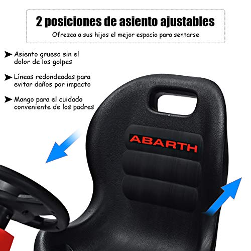 【Asiento ajustable】 Nuestro go kart de pedal fue diseñado desde un punto de vista ergonómico para una mayor comodidad. El asiento, que está equipado con respaldo alta, se puede ajustar según el tipo de necesidades y uso.Ofrece una posición sentada muy cómodo por largos períodos de tiempo sentados.