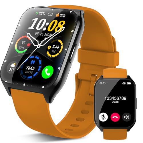 DUSONLAP Reloj Inteligente Hombre Mujer, 1.85″ Smartwatch con Llamadas Bluetooth, 110+Modos Deportivos Pulsera Actividad con Pulsómetro/Monitor de Sueño, Impermeable IP68 para iOS Android, Naranja