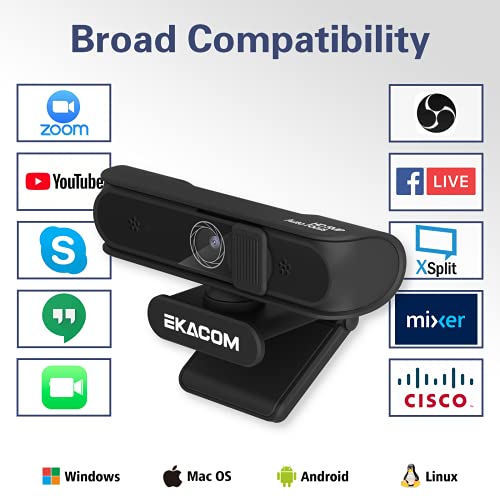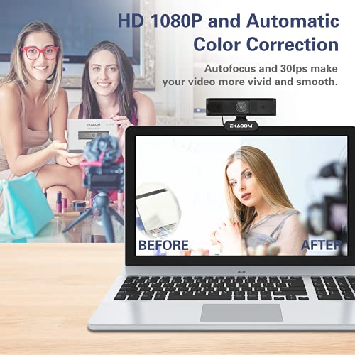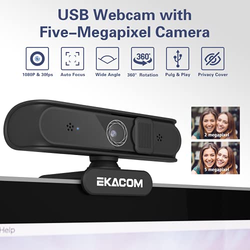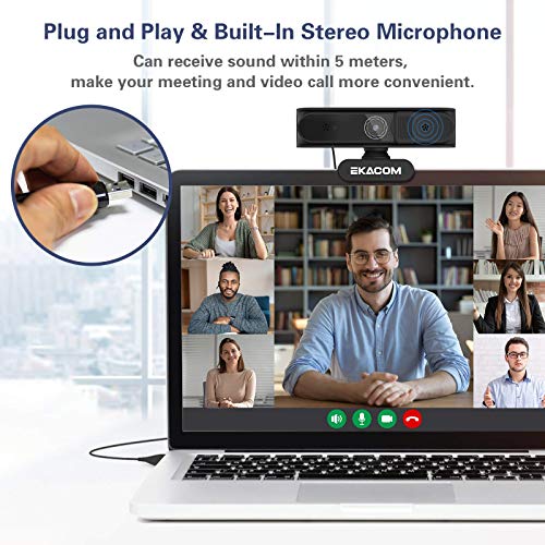 EKACOM Webcam 1080P Full HD con Microfono,Cámara Web con Cubierta de Privacidad,USB Web Camera PC Plug y Play para Video…