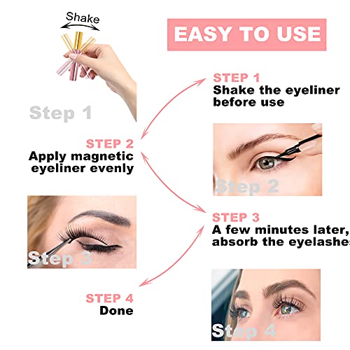 【Seguro, No Estimulante y Cómodo】: Delineador de ojos sin pegamento con partículas magnéticas ultrafinas, sin ingredientes irritantes, sin dañar la piel y las pestañas. Es muy fácil de aplicar y pegar, y los principiantes pueden terminarlo rápidamente.