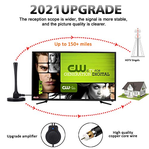 Antena TV Interior, Antena HDTV Digital De 150 Millas Con Amplificador Inteligente Señal,Para Canales TV 1080P 4K…